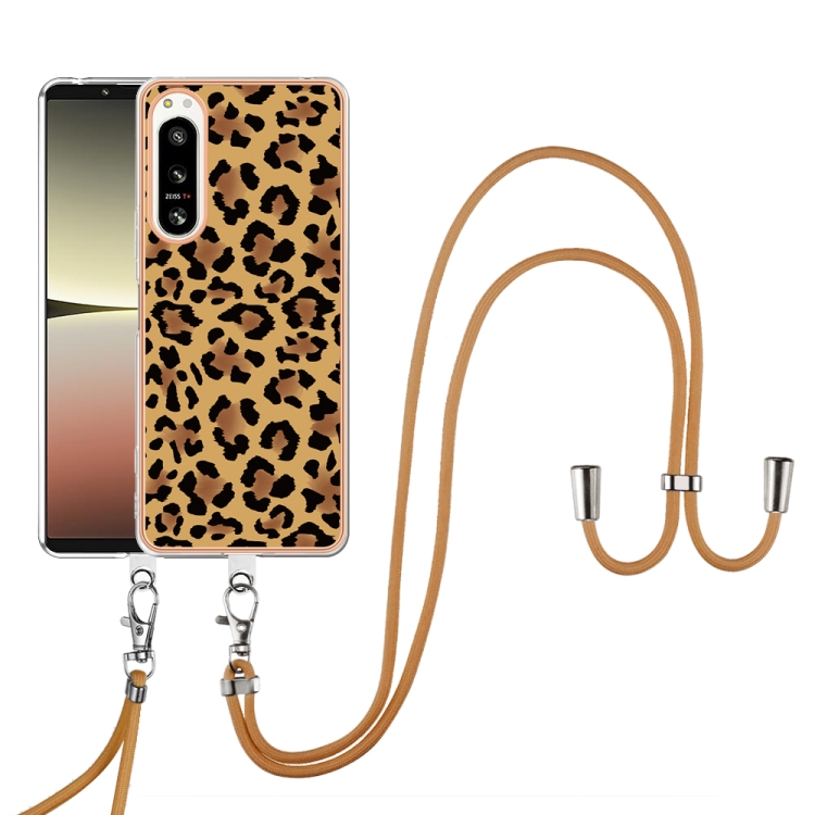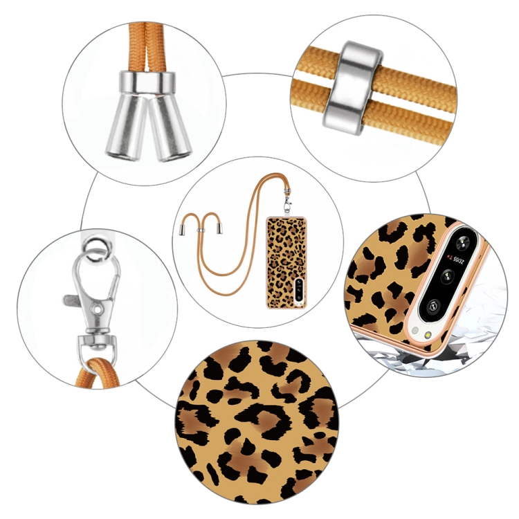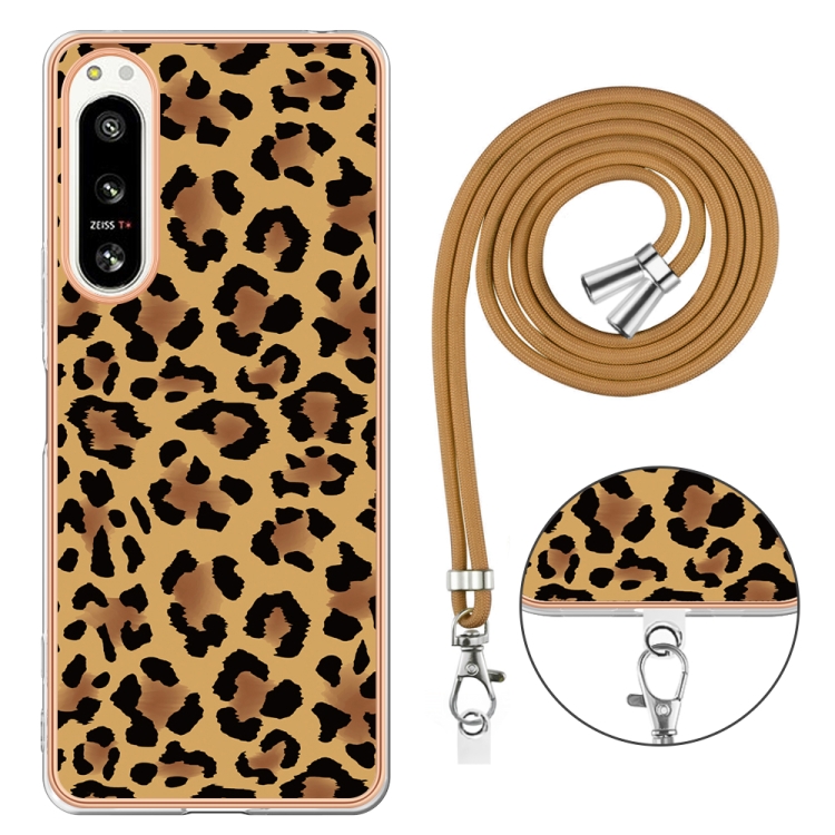 Estuche para Sony Xperia 5 IV IMD Doble Cara con Galvanoplastia y Cordón (Leopardo)