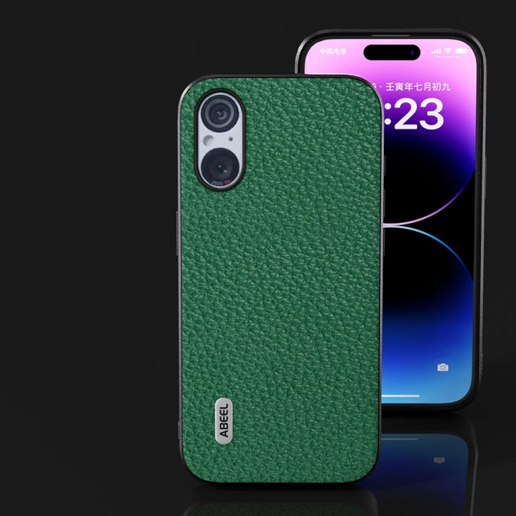 Funda para Sony Xperia 5 V Abeel Cuero Genuino Textura Litchi (Verde)