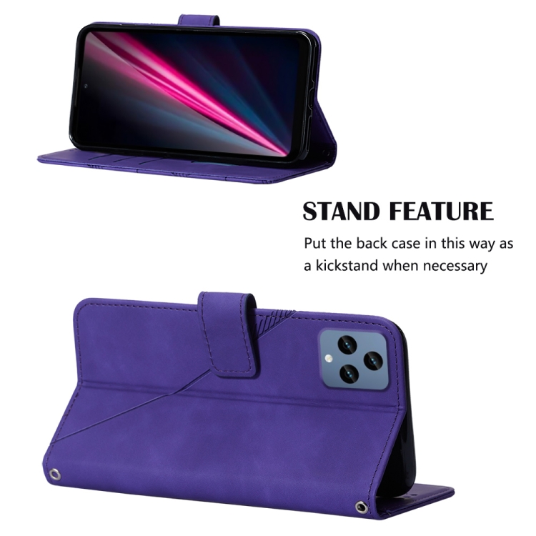 Funda de Cuero con Tapa para T-Mobile Revvl 6 5G Crossbody 3D (Púrpura)
