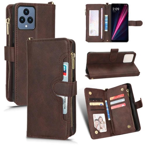 Funda de Cuero con Cremallera para T-Mobile Revvl 6 5G Litchi Textura (Marrón)