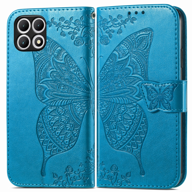 Funda para Teléfono T-Mobile Revvl 7 5G Cuero con Relieve Flor de Amor y Mariposa (Azul)