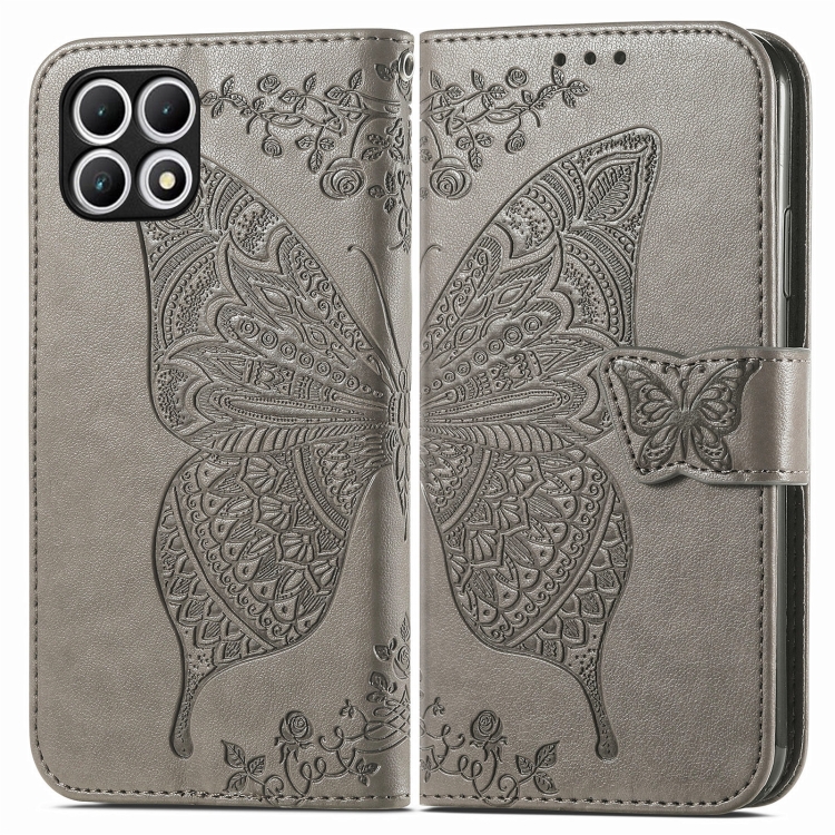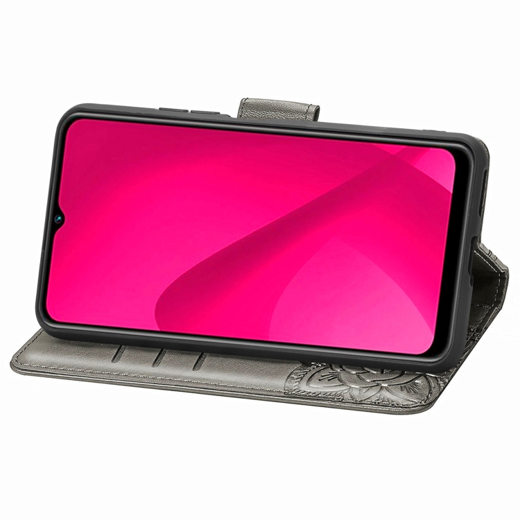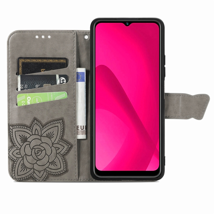 Funda para Teléfono T-Mobile Revvl 7 5G Cuero con Relieve Flor y Mariposa (Gris)