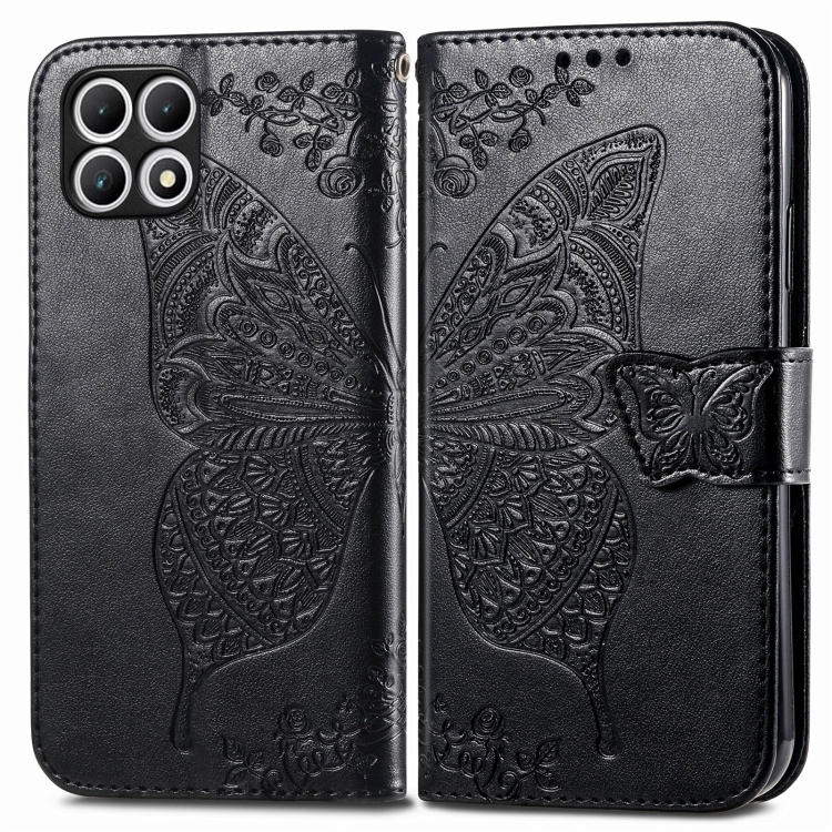 Funda para Teléfono T-Mobile Revvl 7 5G Cuero con Relieve Flor y Mariposa (Negro)