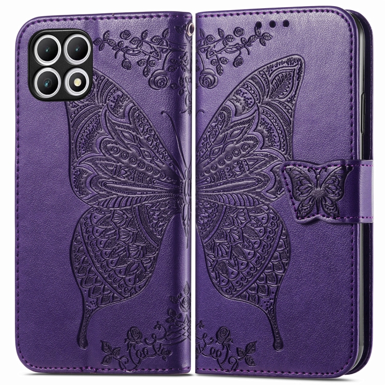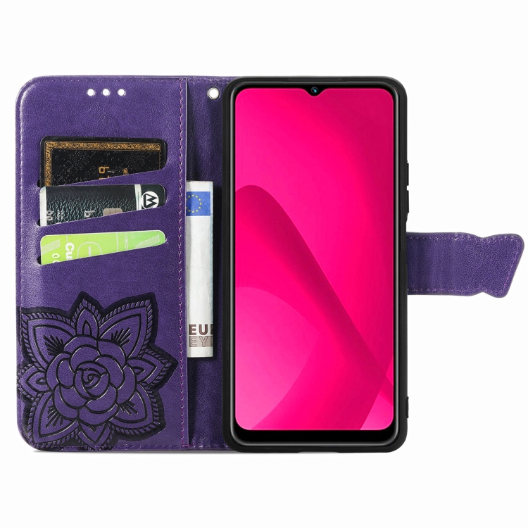 Funda para Teléfono T-Mobile Revvl 7 5G Cuero Relieve Flor y Mariposa (Púrpura)