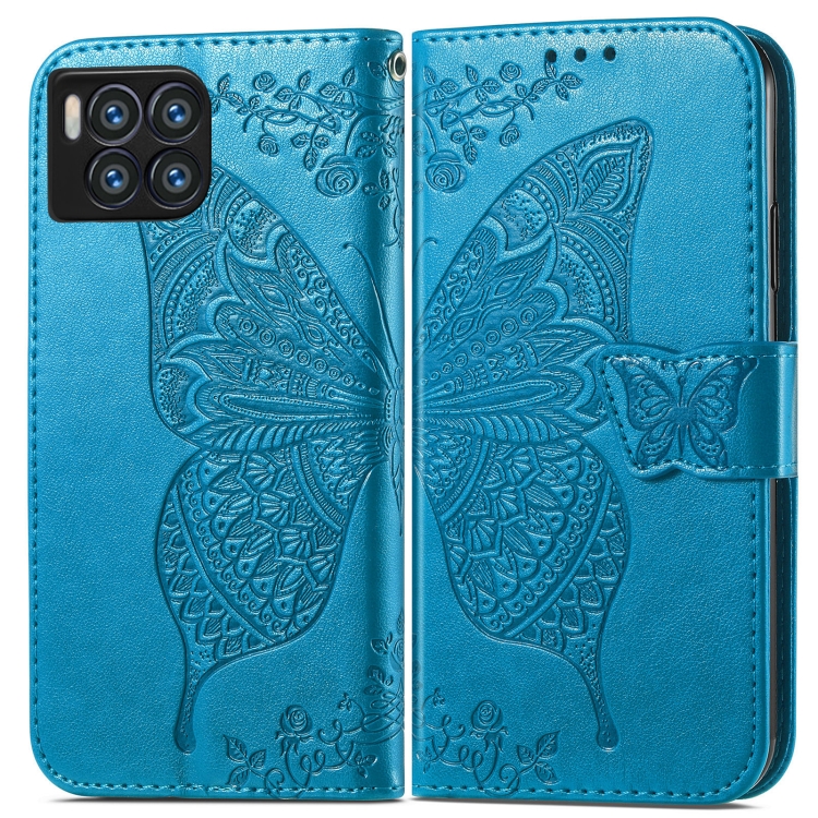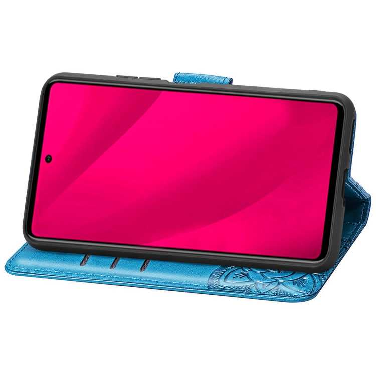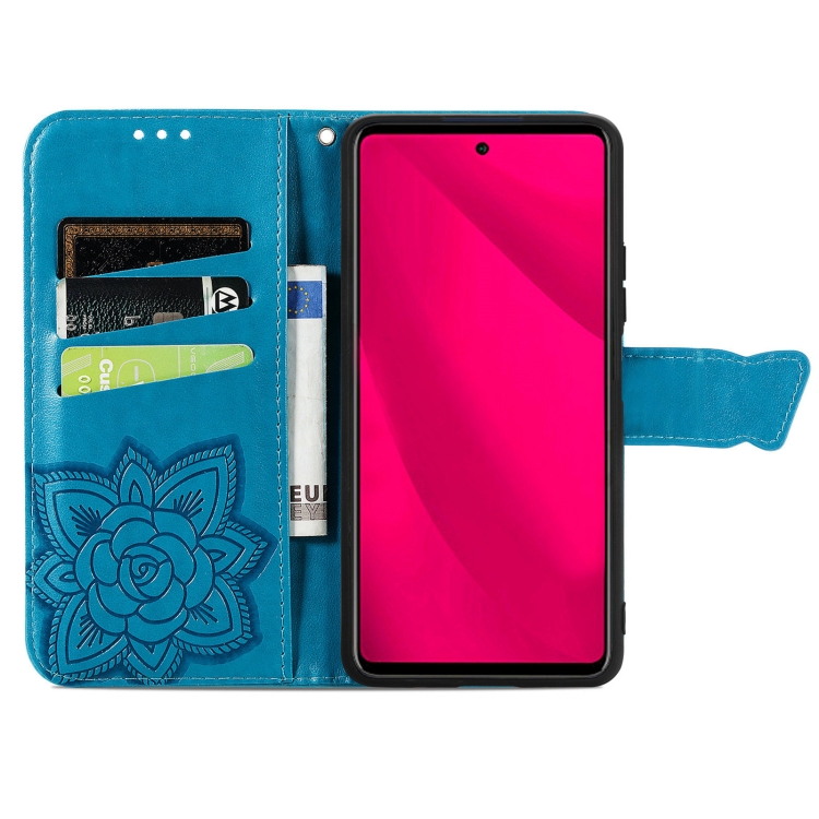 Funda para Teléfono T-Mobile Revvl 7 Pro 5G Cuero con Relieve Flor y Mariposa (Azul)