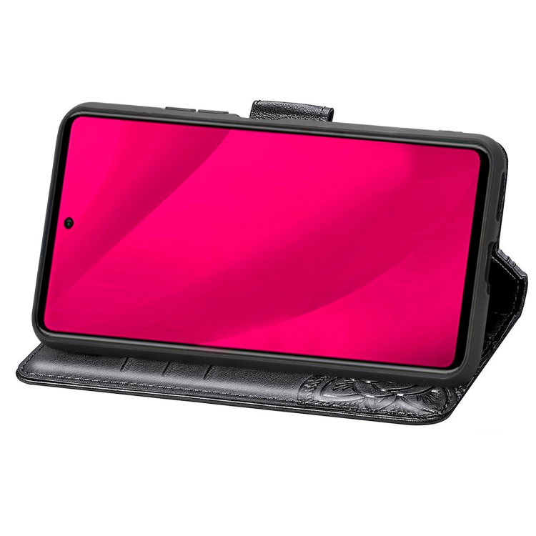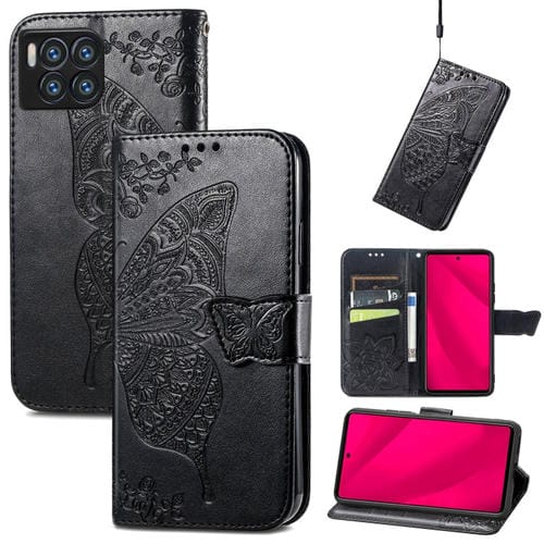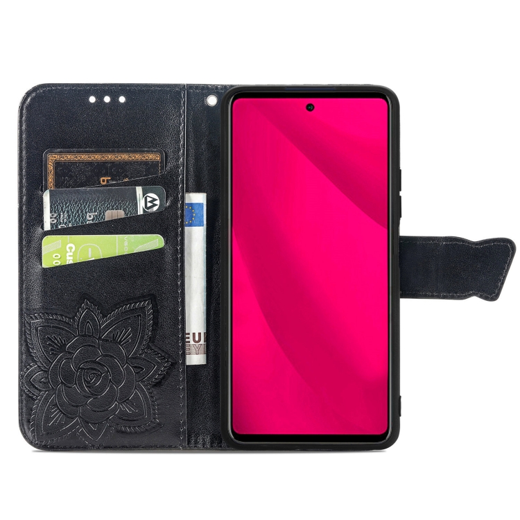 Funda para Teléfono T-Mobile Revvl 7 Pro 5G Cuero con Relieve Flor y Mariposa (Negro)
