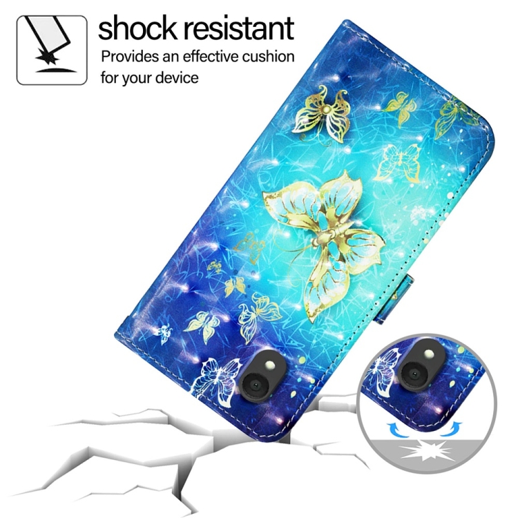Funda de Cuero para TCL 201 con Tapa Horizontal y Pintura 3D Mariposa Dorada