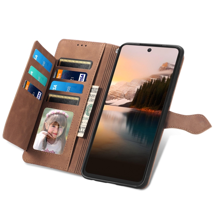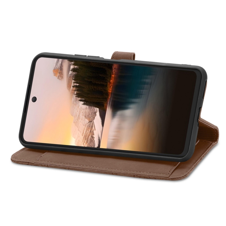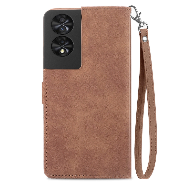 Funda de Cuero para TCL 40 Nxtpaper 4G con Cremallera y Flor En Relieve (Marrón)