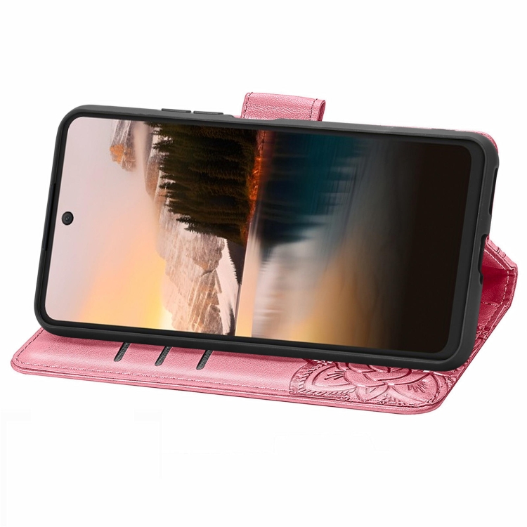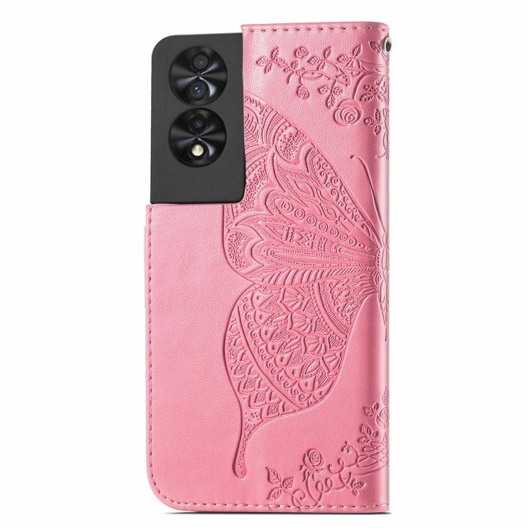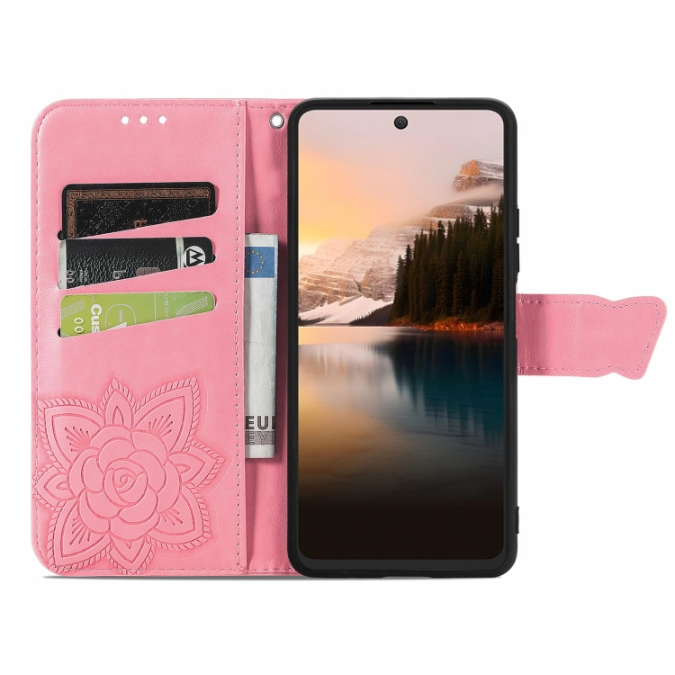 Funda para TCL 40 Nxtpaper 4G de Cuero con Relieve Flor y Mariposa (Rosa)