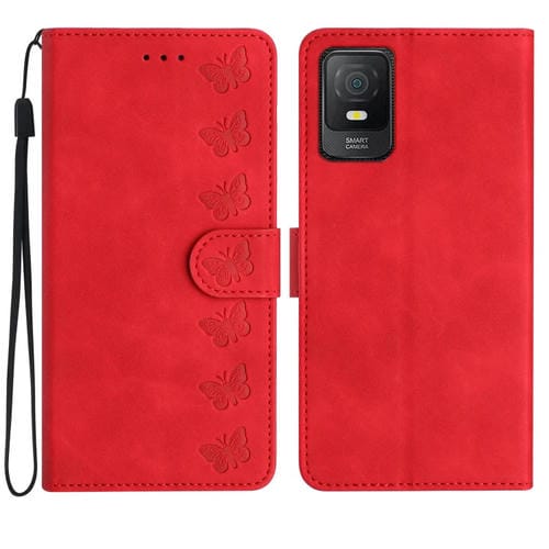 Funda de Cuero para TCL 40 Se Seven Butterflies con Relieve (Rojo)