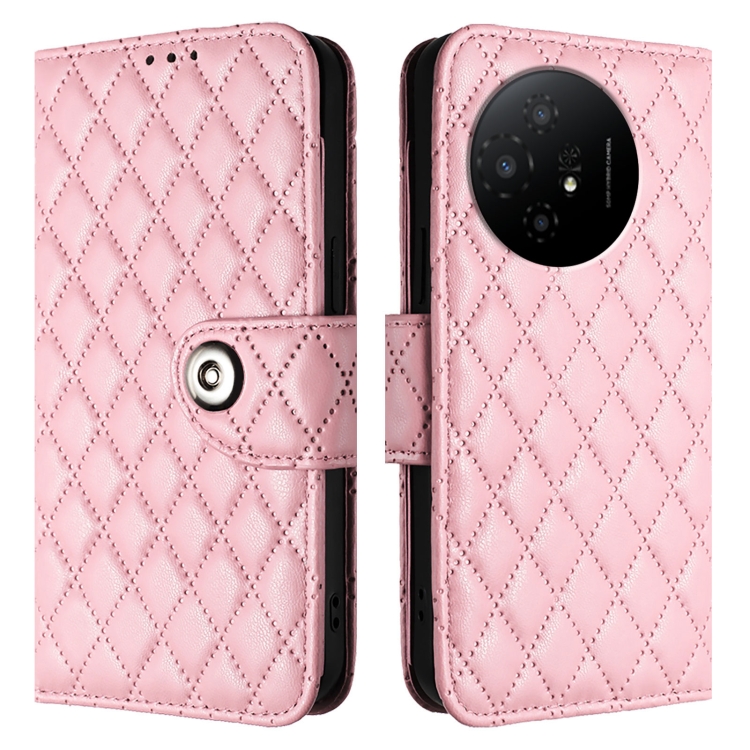 Funda para TCL 50 XL 5G de Cuero con Tapa, Textura Romboidal y Cordón (Rosa)