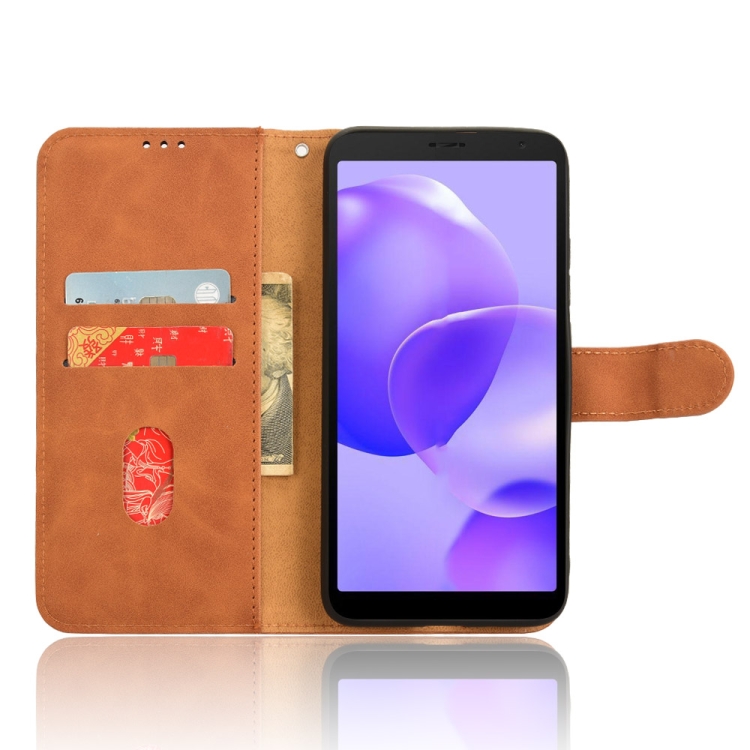 Funda de Cuero con Tapa Magnética para TCL 502 Skin Feel (Marrón)