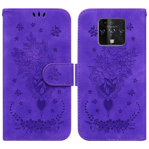 Funda para Tecno Camon 16 de Cuero con Relieve de Mariposa Principal (Púrpura)