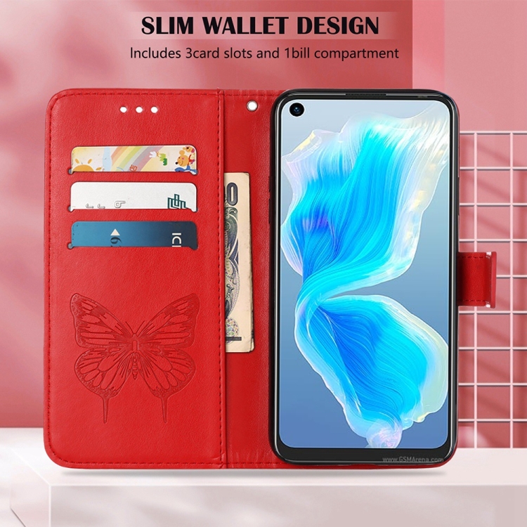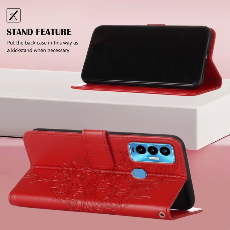 Funda para Tecno Camon 18I de Cuero con Mariposa en Relieve (Rojo)