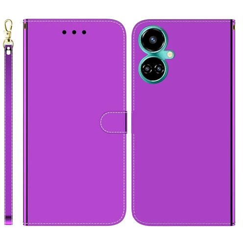 Funda de Cuero para Tecno Camon 19 Pro 5G con Tapa Horizontal y Superficie Espejo (Púrpura)