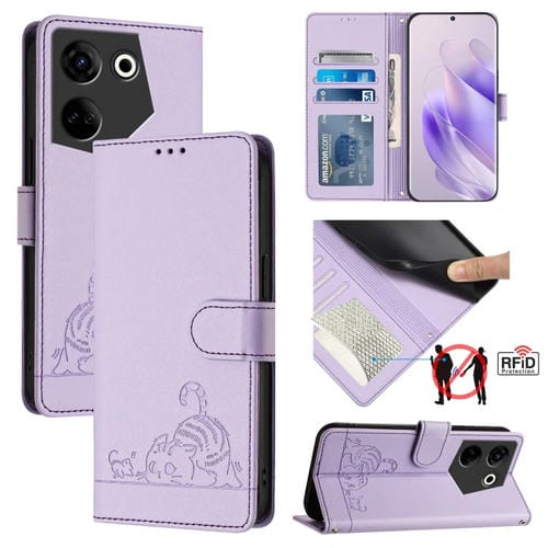 Funda para Tecno Camon 20/20 Pro 4G de Cuero Rfid con Patrón en Relieve y Cordón (Púrpura)