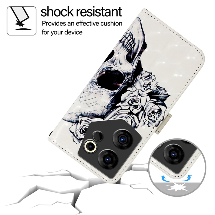 Funda para Tecno Camon 20 Premier de Cuero con Tapa Horizontal y Pintura 3D (Calavera)