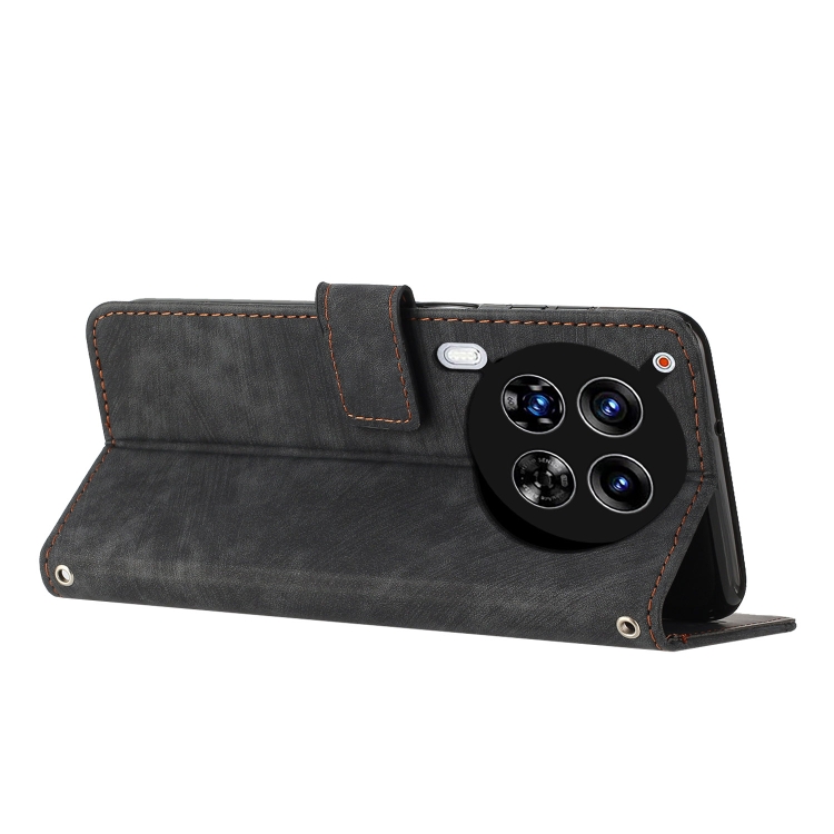 Funda de Cuero para Tecno Camon 30 4G / 5G Skin Feel con Patrón de Rayas y Cordón Largo (Negro)