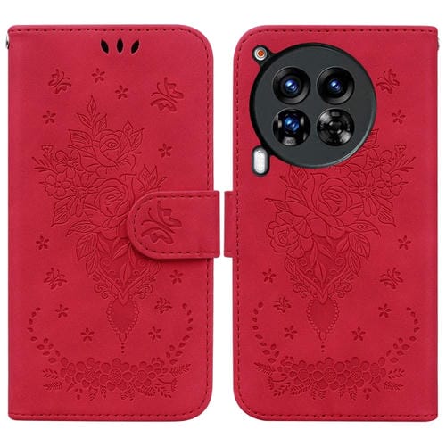 Funda de Cuero para Tecno Camon 30 Premier 5G Butterfly Rose en Relieve (Rojo)