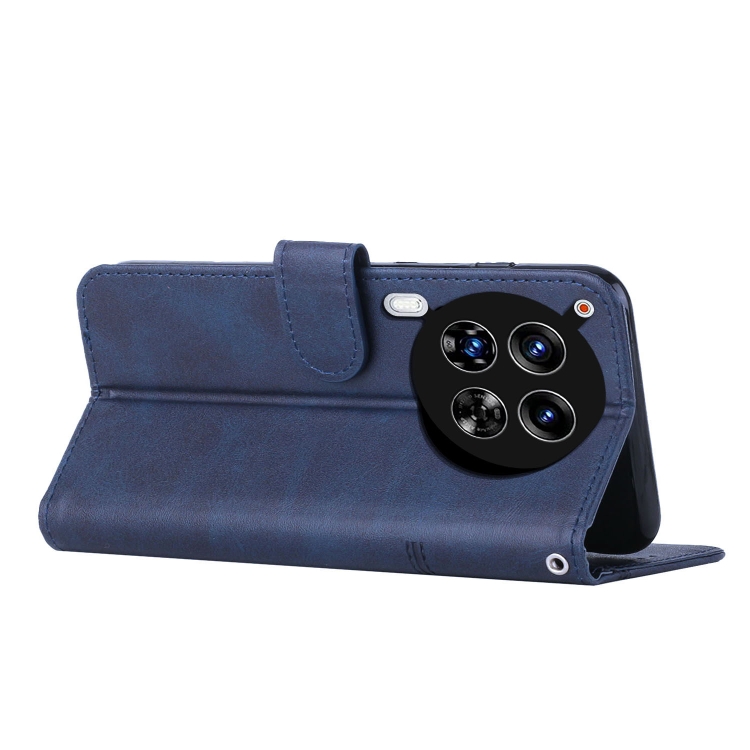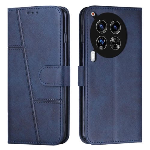 Funda de Cuero para Tecno Camon 30 Premier con Stitching, Textura Becerro y Hebilla (Azul)
