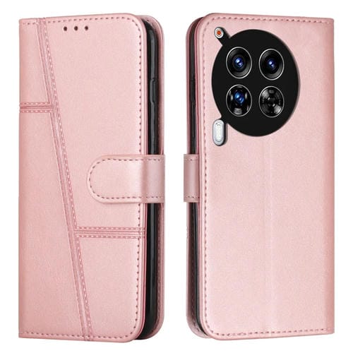 Funda de Cuero Tecno Camon 30 Premier Stitching Becerro Textura Hebilla (Oro Rosa)