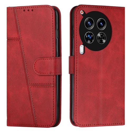 Funda de Cuero Tecno Camon 30 Premier Stitching Textura Becerro Hebilla (Rojo)