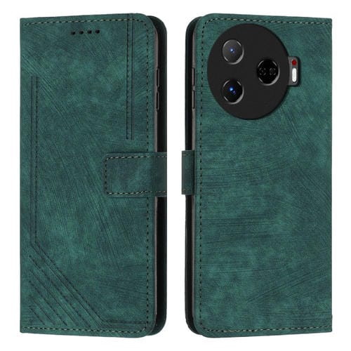 Funda de Cuero para Tecno Camon 30 Pro 5G Skin Feel con Patrón de Rayas y Cordón Largo (Verde)