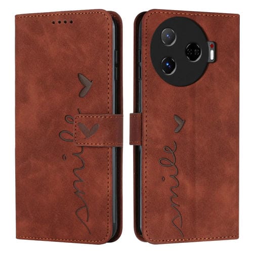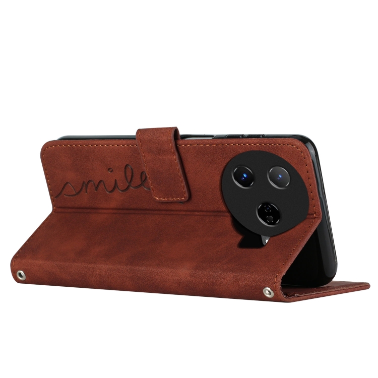 Funda para Tecno Camon 30 Pro 5G Skin Feel Heart de Cuero en Relieve con Cordón Largo (Marrón)