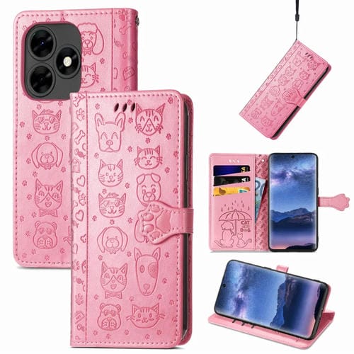 Funda de Cuero para Tecno Itel S23 con Relieve Perros y Gatos (Rosa)