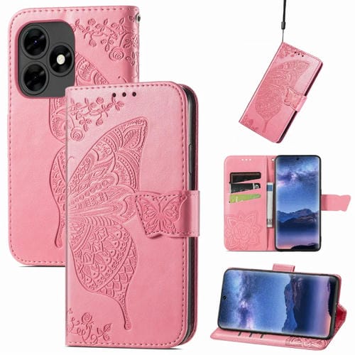 Funda para Tecno Itel S23 de Cuero con Relieve Flor y Mariposa (Rosa)