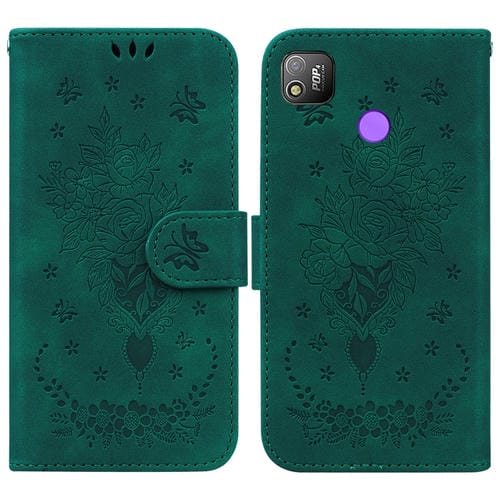 Funda para Tecno Pop 4 de Cuero con Relieve de Mariposa (Verde)