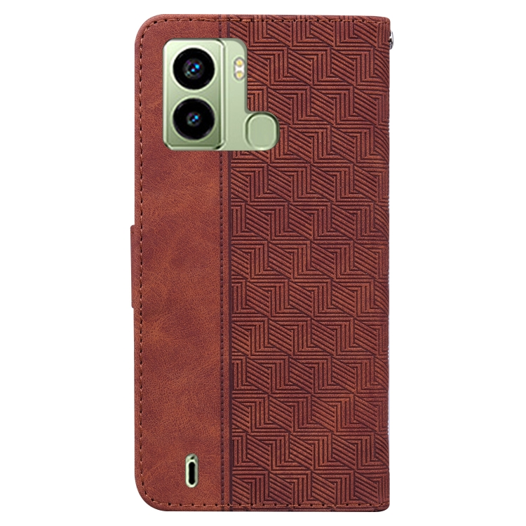 Funda Flip de Cuero para Tecno Pop 6 con Huella Geometric Relieve (Marrón)