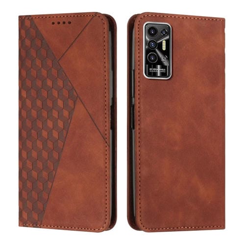 Funda de Cuero Magnética para Tecno Pova 2 Diamond Splicing (Marrón)