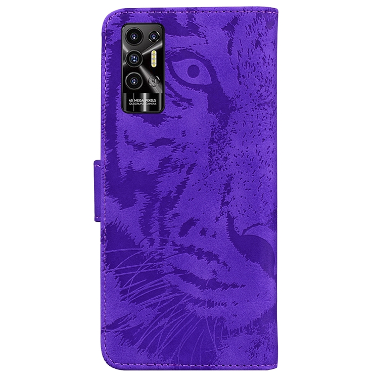 Funda Flip para Tecno Pova 2 con Patrón Tiger en Relieve Horizontal (Púrpura)