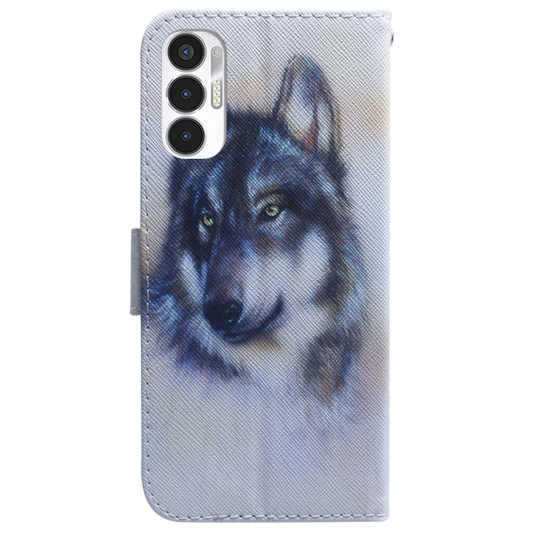 Funda de Cuero para Tecno Pova 3 Le7 con Dibujo Coloreado (Lobo Blanco)
