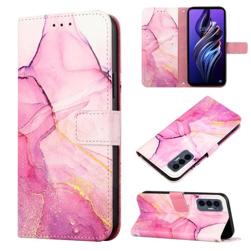 Funda Flip de Cuero para Tecno Pova 3 Le7 Pt003 con Patrón de Mármol (Oro Rosa Púrpura)