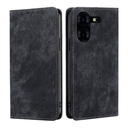Funda de Cuero Magnética para Tecno Pova 5 Pro con Protección RFID y Cepillo Antirrobo (Negro)