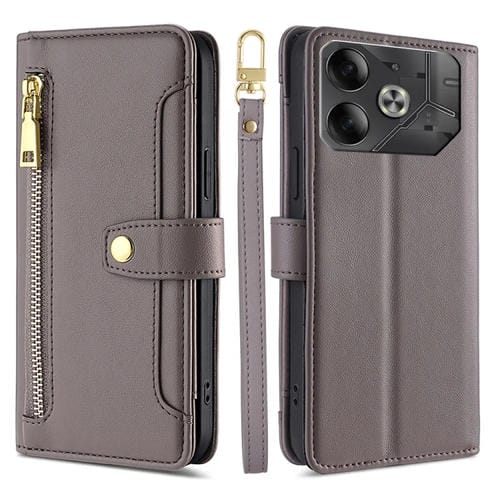 Funda de Cuero para Tecno Pova 6 5G con Billetera y Cremallera (Gris)