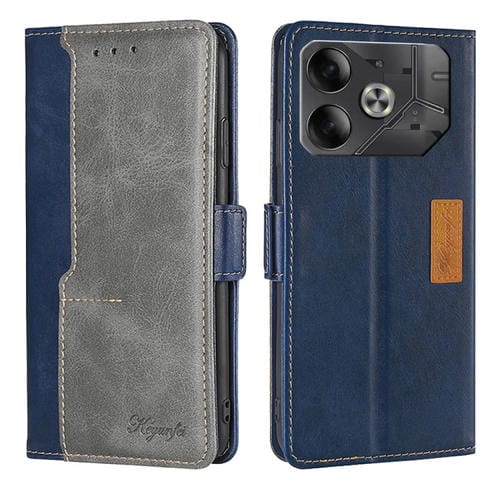 Funda de Cuero para Tecno Pova 6 5G con Hebilla Lateral y Color En Contraste (Azul + Gris)