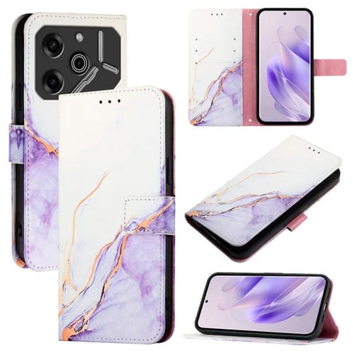 Funda de Cuero con Tapa para Tecno Pova 6 5G Pt003 con Patrón Mármol (Blanco Morado)