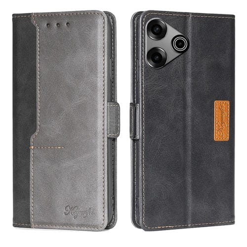 Funda de Cuero para Tecno Pova 6 Pro 5G con Hebilla Lateral (Negro + Gris)