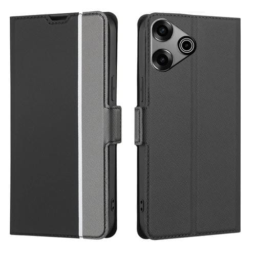 Funda de Cuero para Tecno Pova 6 Pro 5G con Botón Lateral y Textura de Sarga (Negro)