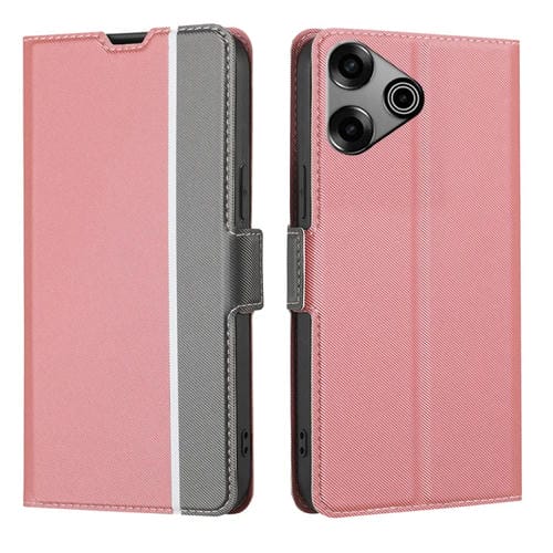 Funda de Cuero para Tecno Pova 6 Pro 5G con Botón Lateral y Textura de Sarga (Rosa)