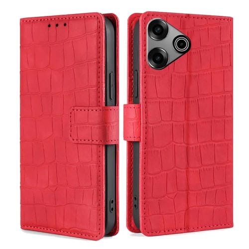 Funda para Tecno Pova 6 Pro 5G de Cuero con Cierre Magnético y Piel de Cocodrilo (Rojo)