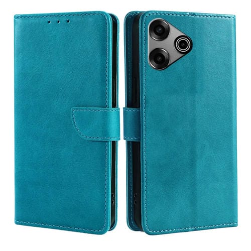 Funda para Tecno Pova 6 Pro 5G de Cuero con Tapa, Hebilla y Textura de Pantorrilla (Azul Claro)
