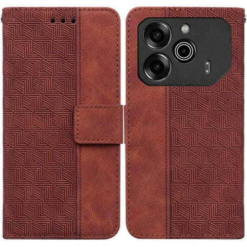 Funda de Cuero para Tecno Pova 6 Pro y Pova 6 con Relieve Geométrico (Marrón)