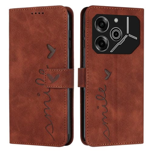 Funda de Cuero para Tecno Pova 6 Pro Skin Feel Heart con Cordón Largo (Marrón)