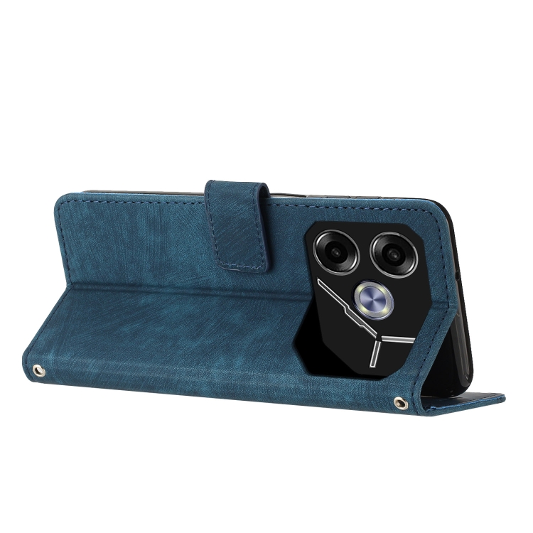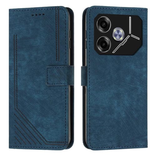 Funda de Cuero para Teléfono Tecno Pova 6 Skin Feel con Patrón de Rayas y Cordón Largo (Azul)