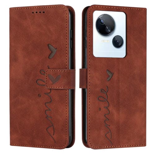 Funda de Cuero para Tecno Spark 10 5G Skin Feel con Patrón de Corazón (Marrón)