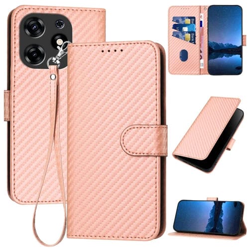 Funda de Cuero para Tecno Spark 10 Pro Yx0070 con Hebilla de Fibra de Carbono y Cordón (Rosa)